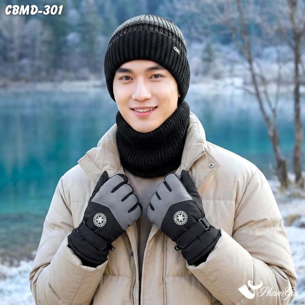 Combo Giữ Ấm Đặc Biệt Mùa Đông Cho Nam Gồm Khăn Len - Nón Len - Găng Tay Cao Cấp Màu Xám Ghi (CBMD301)