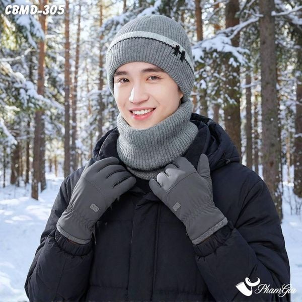Combo Giữ Ấm Đặc Biệt Mùa Đông Cho Nam Gồm Khăn Len - Nón Len - Găng Tay Cao Cấp Màu Xám Khói (CBMD305)