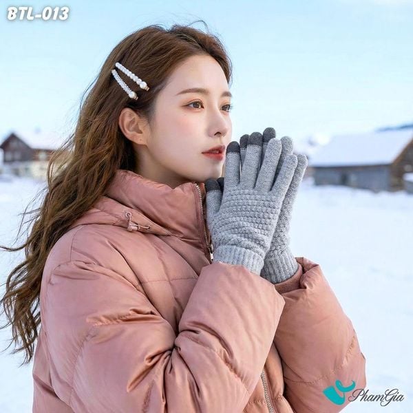 Găng Tay Len Giữ Ấm Màu Xám Phong Cách Hiện Đại (BTL013)
