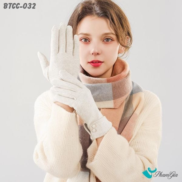 Găng Tay Len Nhung Lót Lông 2 Lớp Đính Nút Cao Cấp Màu Beige (BTCC032)