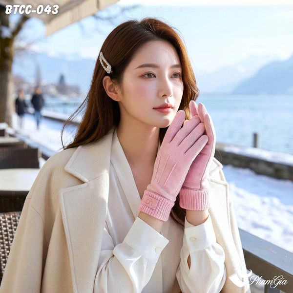 Găng Tay Mùa Đông Phối Viền Len Giữ Ấm Cao Cấp Màu Hồng Ruốc (BTCC043)