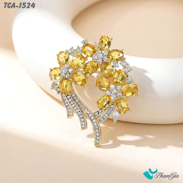 Ghim Cài Áo Hoa Diễm Châu Đính Đá Màu Vàng Thanh Lịch (TCA1524)