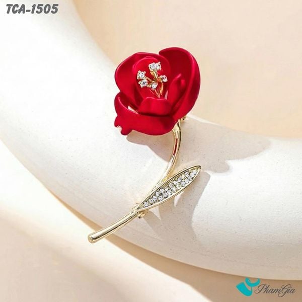 Ghim Cài Áo Hoa Hồng Tráng Men Đính Đá Màu Đỏ Thanh Lịch (TCA1505)