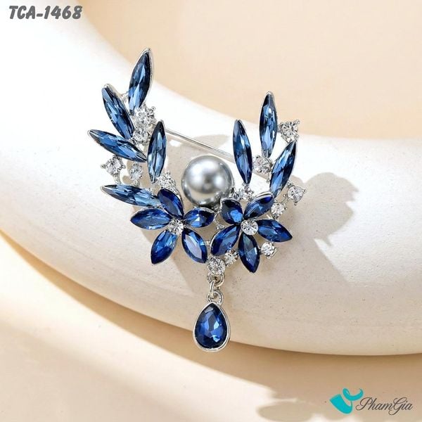 Ghim Cài Áo Vòng Vòng Hoa Năm Cánh Đính Đá Pha Lê Xanh (TCA1468)