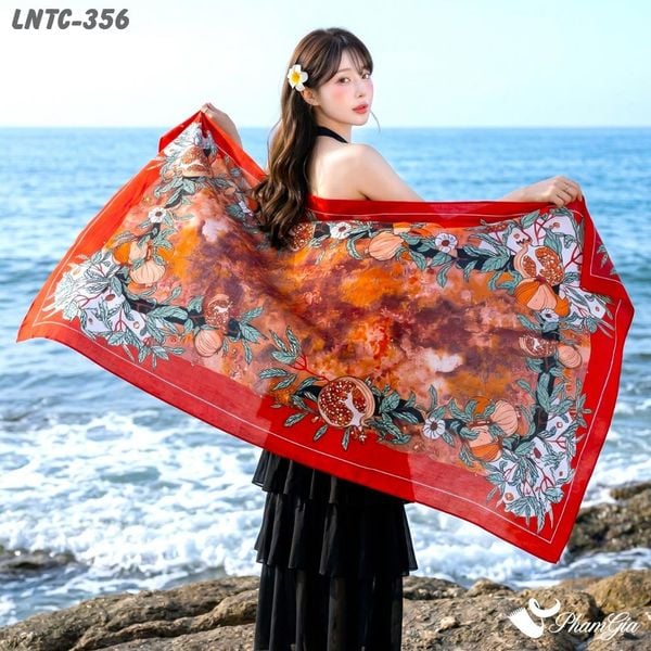 Khăn Choàng Linen Boho Họa Tiết Lựu Chín Màu Đỏ Nổi Bật (LNTC356)