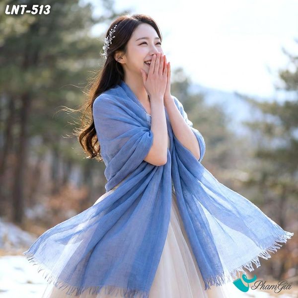 Khăn Choàng Linen Đơn Sắc Cao Cấp Màu Xanh Denim (LNT513)