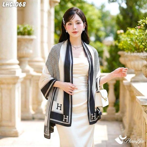 Khăn Choàng Lụa Hàng Châu Họa Tiết Chữ H Retro (LHC068)