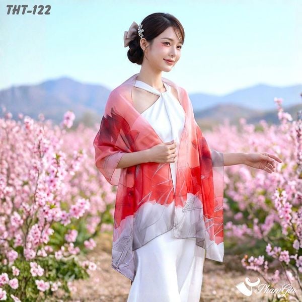 Khăn Choàng Tằm Họa Tiết Hoa Sen Màu Đỏ Trang Nhã (THT122)