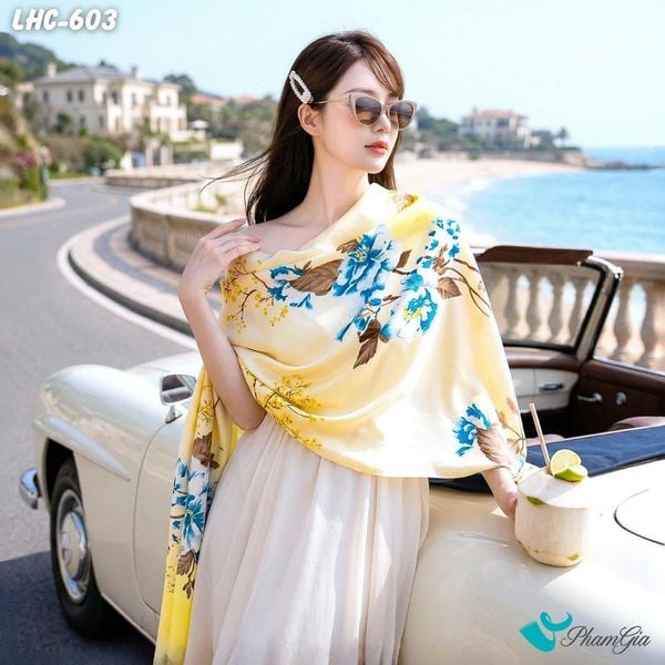 Được dệt từ chất liệu lụa tổng hợp cao cấp, mang lại cảm giác mát lạnh, nhẹ nhàng và cực kỳ mềm mại khi tiếp xúc với da. Bề mặt khăn lụa có độ bóng nhẹ và độ rũ tự nhiên, giúp tôn lên nét sang trọng, thanh thoát và bắt sáng cực đẹp. Dù là mùa hè hay mùa thu, khăn choàng lụa đều mang đến sự dễ chịu và thoải mái.