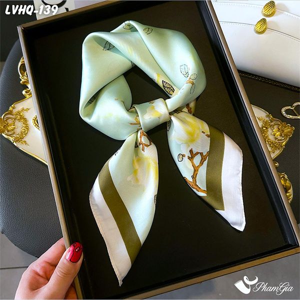 Khăn Lụa Vuông 70*70Cm Phong Cách Hàn Quốc Họa Tiết Hoa Mộc Lan Màu Xanh Mint (LVHQ139)