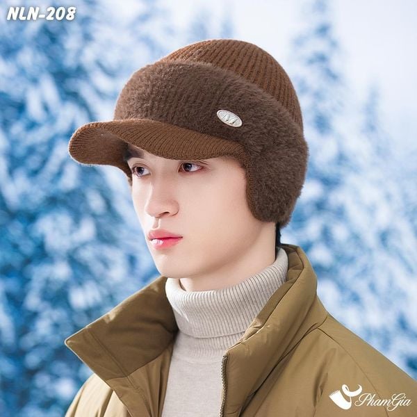 Nón Len Phối Lông Thu Đông Thời Trang Nam Kèm Tai Chụp Giữ Ấm Màu Nâu (NLN208)