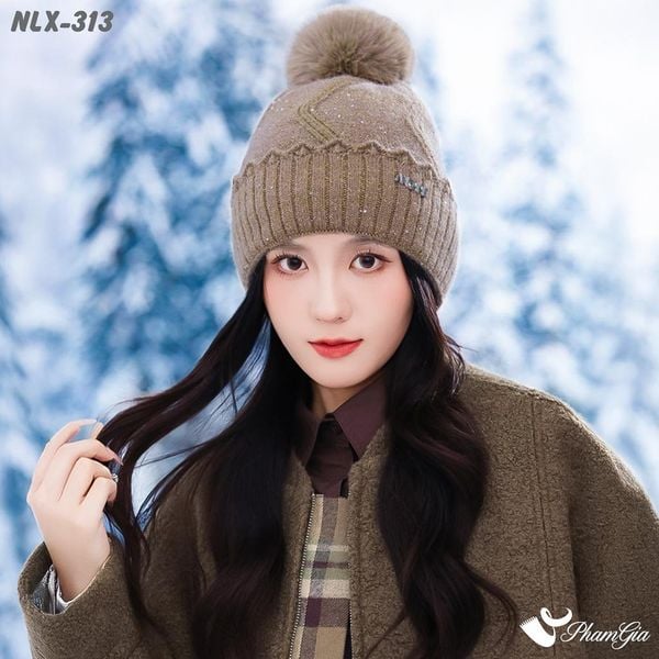 Nón Len Trái Châu Phối Kim Tuyến 2 Lớp Giữ Ấm Cao Cấp Màu Nâu Đồng (NLX313)