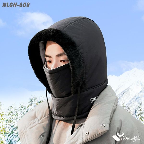Nón Lông Giữ Nhiệt Chuyên Dụng Tích Hợp Khẩu Trang Giữ Ấm Siêu Dày Màu Đen (NLGN608)