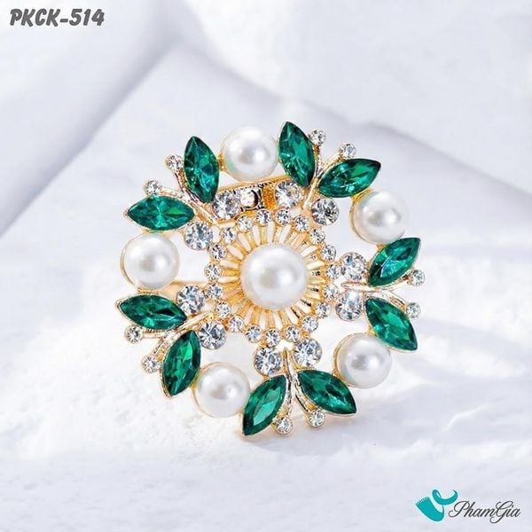 Phụ Kiện Cài Khăn, Cài Áo Đa Năng Họa Tiết Họa Tiết Hoa Kết Lá Đính Ngọc Trai (PKCK514)