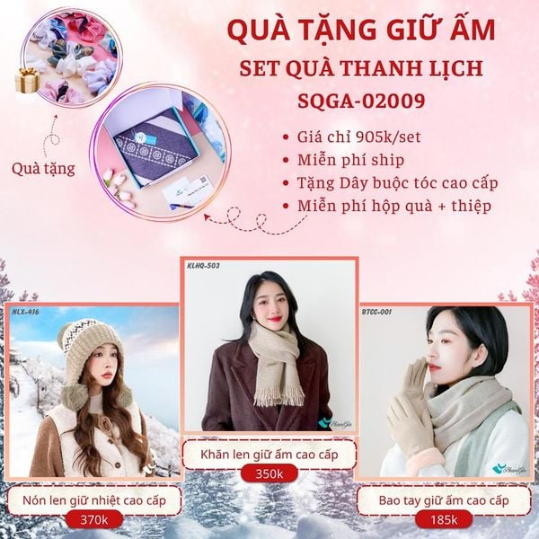Set Quà Tặng Giữ Ấm, Du Lịch Kết Hợp Nón Len, Khăn Giữ Ấm Và Bao Tay với thiết kế thời trang, thanh lịch và sang trọng, tính ứng dụng cao, là sự lựa chọn lý tưởng cho các dịp sinh nhật, lễ tết, Noel, du lịch xứ lạnh, 20/11, 20/10, 8/3 và các dịp đặc biệt trong năm. Mỗi món phụ kiện được tuyển chọn kỹ lưỡng, đảm bảo chất lượng và sự tinh tế, ấn tượng để gửi tặng người thân, bạn bè, nhân viên, khách hàng, đối tác...