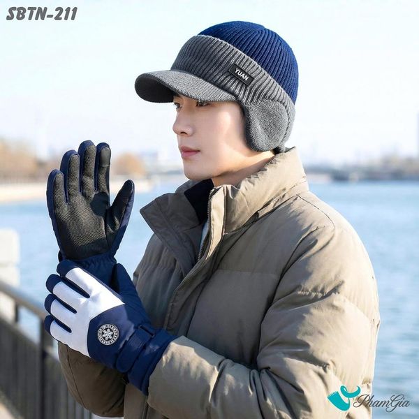 Set Giữ Ấm Đặc Biệt Mùa Đông Cho Nam Gồm Nón Len Và Găng Tay Cao Cấp Màu Xanh Navy (SBTN211)