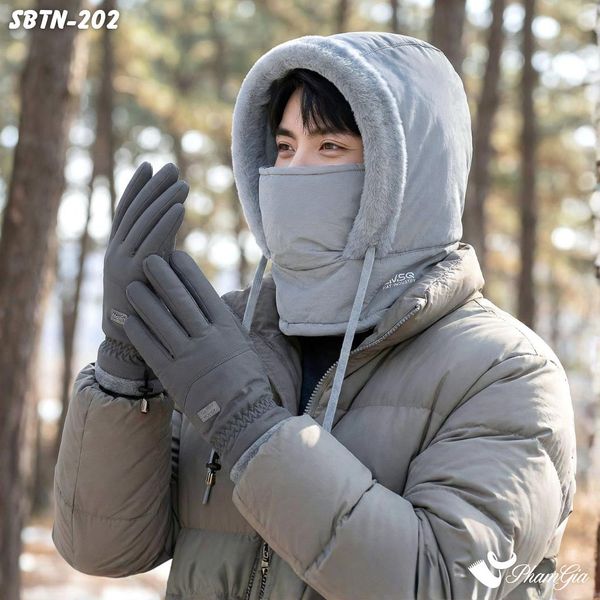 Set Giữ Ấm Đặc Biệt Mùa Đông Cho Nam Gồm Nón Lông Giữ Nhiệt Và Găng Tay Cao Cấp Màu Xám (SBTN202)