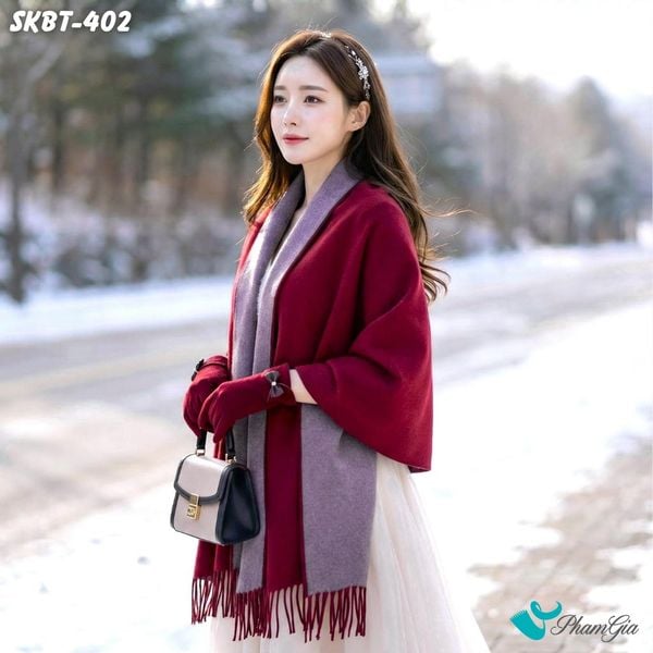 Set Giữ Ấm Đặc Biệt Mùa Đông Gồm Khăn Dạ Và Găng Tay Cao Cấp Màu Đỏ Đô (SKBT402)