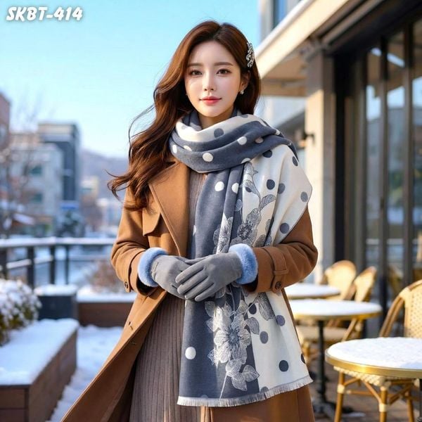 Set Giữ Ấm Đặc Biệt Mùa Đông Gồm Khăn Dạ Và Găng Tay Cao Cấp Màu Xám (SKBT414)