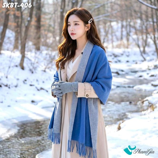Set Giữ Ấm Đặc Biệt Mùa Đông Gồm Khăn Dạ Và Găng Tay Cao Cấp Màu Xanh - Xám (SKBT406)