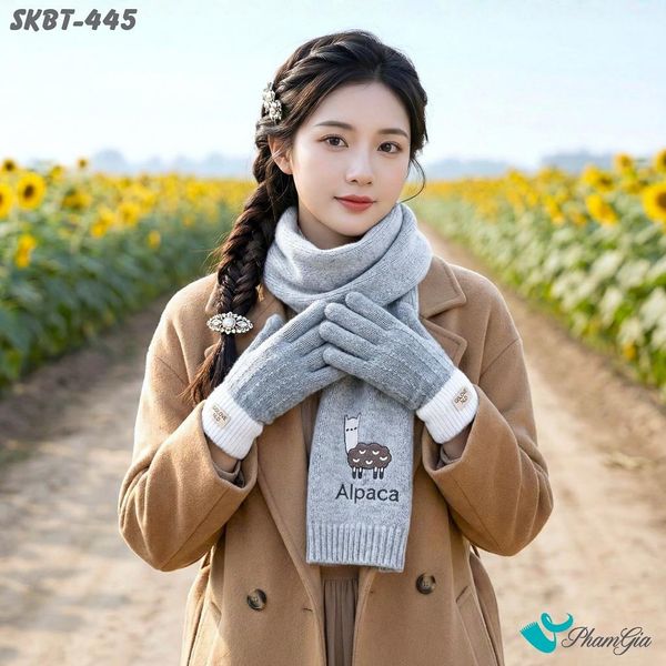 Set Giữ Ấm Đặc Biệt Mùa Đông Gồm Khăn Len Và Găng Tay Cao Cấp Màu Xám (SKBT445)
