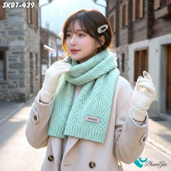 Set Giữ Ấm Đặc Biệt Mùa Đông Gồm Khăn Len Và Găng Tay Cao Cấp Màu Xanh Mint (SKBT439)