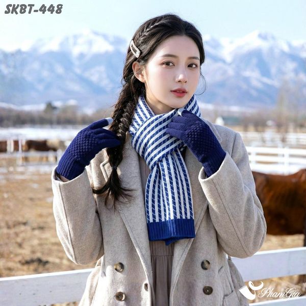 Set Giữ Ấm Đặc Biệt Mùa Đông Gồm Khăn Len Và Găng Tay Cao Cấp Màu Xanh Navy (SKBT448)