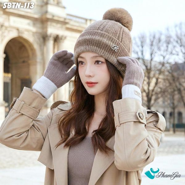 Set Giữ Ấm Đặc Biệt Mùa Đông Gồm Nón Len Và Găng Tay Len Màu Nâu Nhạt (SBTN113)