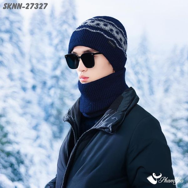 Set Khăn Nón Len Beanie Giữ Ấm Unisex Họa Tiết Mùa Đông Màu Xanh Navy (SKNN27327)