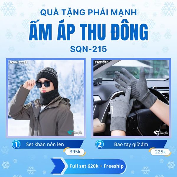 Set Quà Tặng Giữ Ấm, Du Lịch Cho Nam - Set Khăn Nón Và Bao Tay Giữ Ấm (SQN215)