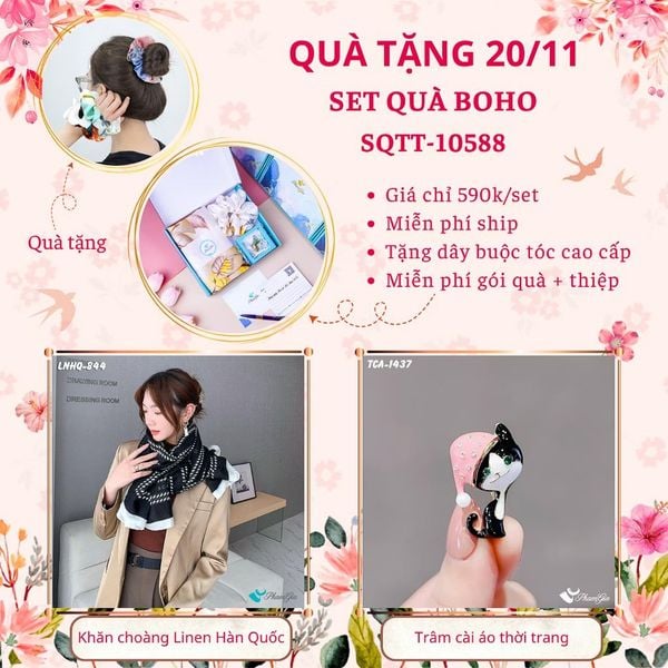 Kết hợp khăn choàng Linen Hàn Quốc và ghim cài áo với thiết kế ấn tượng và phóng khoáng, Set Quà Tặng Boho là sự lựa chọn lý tưởng cho các dịp sinh nhật, lễ tết, 20/11, 20/10, 8/3 và các dịp đặc biệt trong năm. Mỗi món phụ kiện được tuyển chọn kỹ lưỡng, đảm bảo chất lượng và sự tinh tế, ấn tượng để gửi tặng người thân, bạn bè, nhân viên, khách hàng, đối tác...