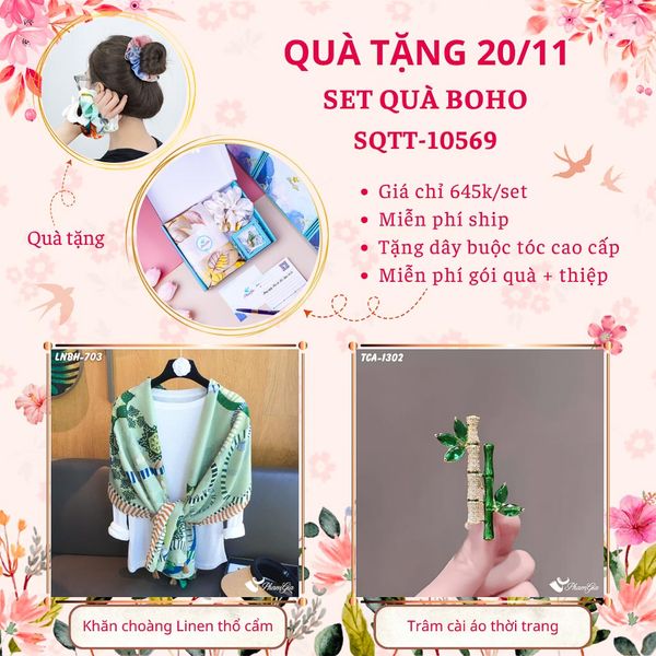 Kết hợp khăn choàng Linen boho họa tiết thổ cẩm và ghim cài áo với thiết kế ấn tượng và phóng khoáng, Set Quà Tặng Boho là sự lựa chọn lý tưởng cho các dịp sinh nhật, lễ tết, 20/11, 20/10, 8/3 và các dịp đặc biệt trong năm. Mỗi món phụ kiện được tuyển chọn kỹ lưỡng, đảm bảo chất lượng và sự tinh tế, ấn tượng để gửi tặng người thân, bạn bè, nhân viên, khách hàng, đối tác...