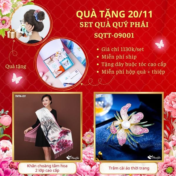 Set Quà Tặng Khăn Choàng Tằm Hoa 2 Lớp Cao Cấp Và Ghim Cài Áo Quý Phái - Giải pháp nâng cấp quà tặng hoành tráng và ý nghĩa cho phái đẹp