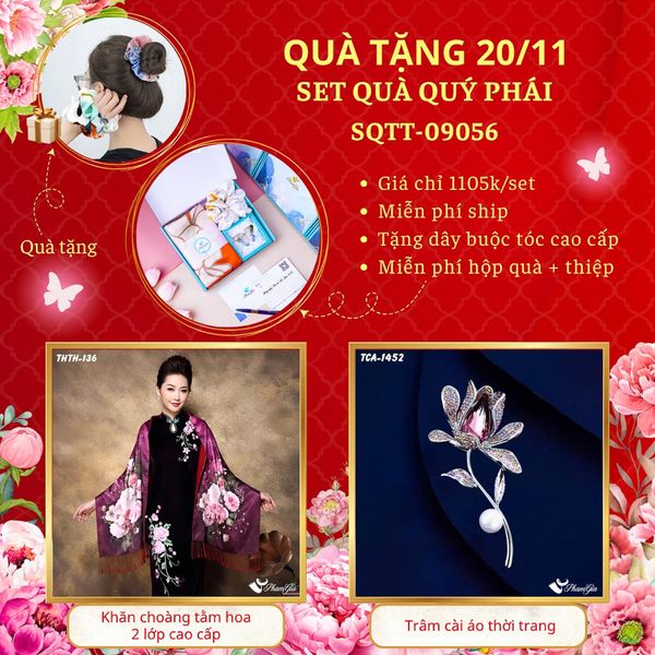 Set Quà Tặng Khăn Choàng Tằm Hoa 2 Lớp Cao Cấp Và Ghim Cài Áo Quý Phái - Giải pháp nâng cấp quà tặng hoành tráng và ý nghĩa cho phái đẹp