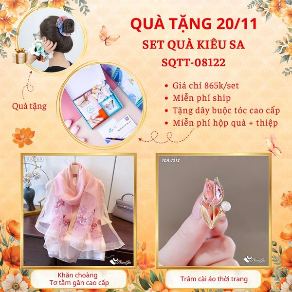 Kết hợp khăn choàng tơ tằm gân và ghim cài áo với thiết kế ấn tượng và sang trọng, Set Quà Tặng Kiêu Sa là sự lựa chọn lý tưởng cho các dịp sinh nhật, lễ tết, 20/11, 20/10, 8/3 và các dịp đặc biệt trong năm. Mỗi món phụ kiện được tuyển chọn kỹ lưỡng, đảm bảo chất lượng và sự tinh tế, ấn tượng để gửi tặng người thân, bạn bè, nhân viên, khách hàng, đối tác...