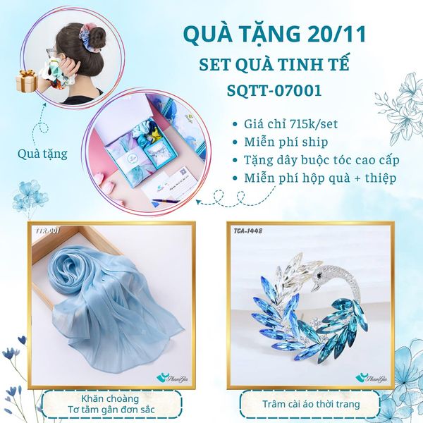 Kết hợp khăn tằm gân đơn sắc cao cấp và ghim cài áo tinh tế với thiết kế sang trọng và thanh lịch, Set Quà Tặng là sự lựa chọn lý tưởng cho các dịp sinh nhật, lễ tết, 20/11, 20/10, 8/3 và những dịp đặc biệt trong năm. Mỗi món phụ kiện đều được tuyển chọn kỹ lưỡng, đảm bảo chất lượng và sự tinh tế, ấn tượng để gửi tặng người thân, bạn bè, nhân viên, khách hàng, đối tác...