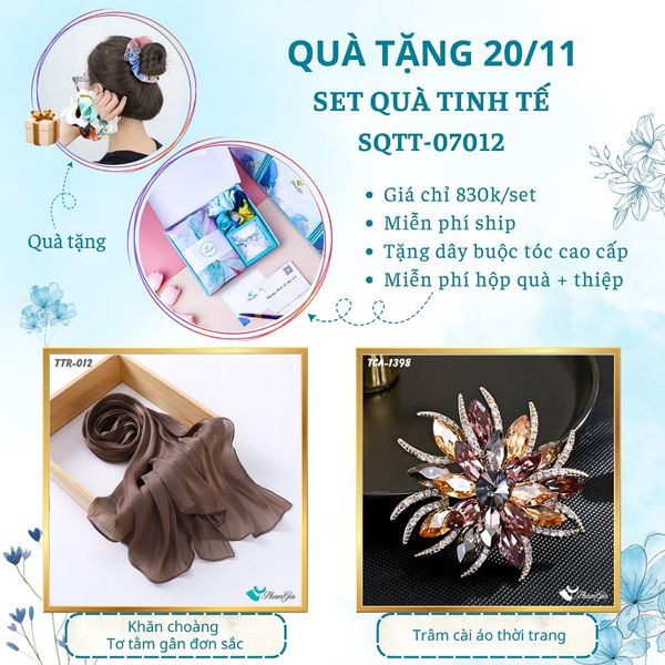 Kết hợp khăn tằm gân đơn sắc cao cấp và ghim cài áo tinh tế với thiết kế sang trọng và thanh lịch, Set Quà Tặng là sự lựa chọn lý tưởng cho các dịp sinh nhật, lễ tết, 20/11, 20/10, 8/3 và những dịp đặc biệt trong năm. Mỗi món phụ kiện đều được tuyển chọn kỹ lưỡng, đảm bảo chất lượng và sự tinh tế, ấn tượng để gửi tặng người thân, bạn bè, nhân viên, khách hàng, đối tác...