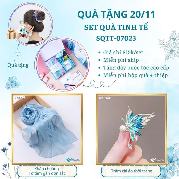 Kết hợp khăn tằm gân đơn sắc cao cấp và ghim cài áo tinh tế với thiết kế sang trọng và thanh lịch, Set Quà Tặng là sự lựa chọn lý tưởng cho các dịp sinh nhật, lễ tết, 20/11, 20/10, 8/3 và những dịp đặc biệt trong năm. Mỗi món phụ kiện đều được tuyển chọn kỹ lưỡng, đảm bảo chất lượng và sự tinh tế, ấn tượng để gửi tặng người thân, bạn bè, nhân viên, khách hàng, đối tác...